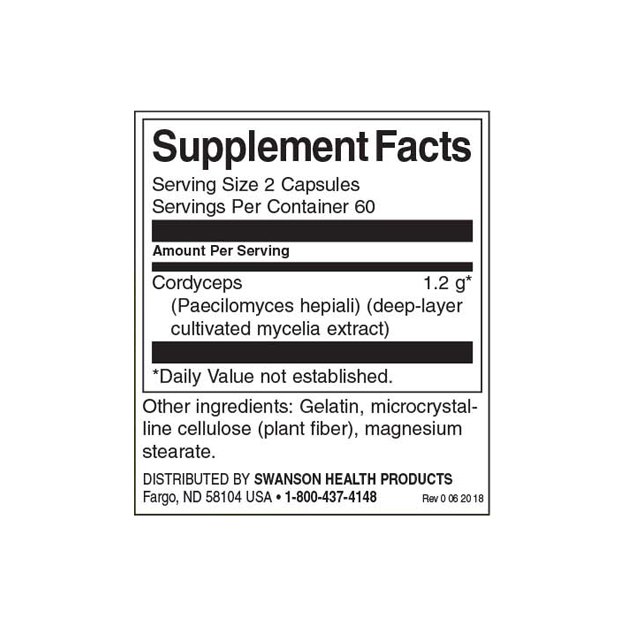 • Cordyceps (Paecilomyces hepiali) (deep-layer cultivated mycelia extract) – 1.2 g
